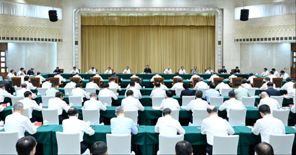 8月26日,中共中央总书记、国家主席、中央军委主席习近平在结束出席金砖国家领导人第十五次会晤并对南非进行国事访问回到国内后,在乌鲁木齐专门听取新疆维吾尔自治区党委和政府、新疆生产建设兵团工作汇报,发表了重要讲话。新华社记者 燕雁 摄