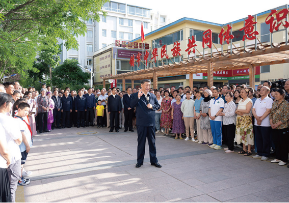 2024年6月19日至20日,中共中央总书记、国家主席、中央军委主席习近平在宁夏考察。这是19日下午,习近平在银川市金凤区长城花园社区考察时,同社区居民亲切交流。 新华社记者 谢环驰/摄