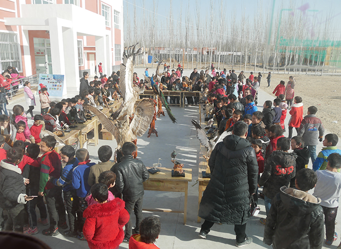 此次活动由beat365中文登录入口历史与哲学学院和生命科学学院共同主办,12月20日-22日先后走进和田县塔瓦库勒乡巴克墩村学校、和田县塔瓦库勒乡中心小学、和田市第五小学,参展师生共5000余人。展览以扁吻鱼(新疆大头鱼)、塔里木兔、水獭、秃鹫、秋沙鸭等68件动物标本为主要展品,辅以图片展板、宣传手册和问卷调查等多种形式,向和田地区青少年详尽介绍了环塔里木地区的生物多样性情况,及生态保护迫切性和重要性。展出结束后,主办方分别向三所学校捐赠了部分动物标本用于学校课堂教学。