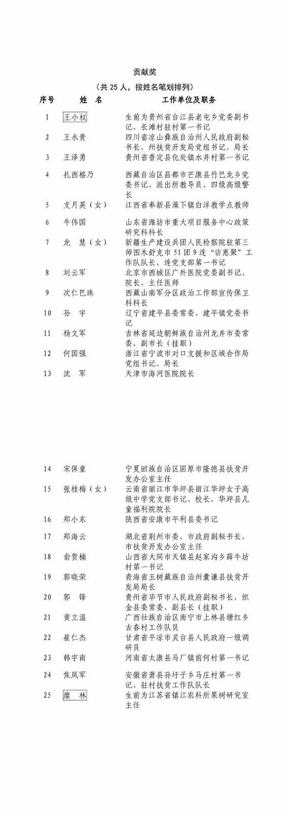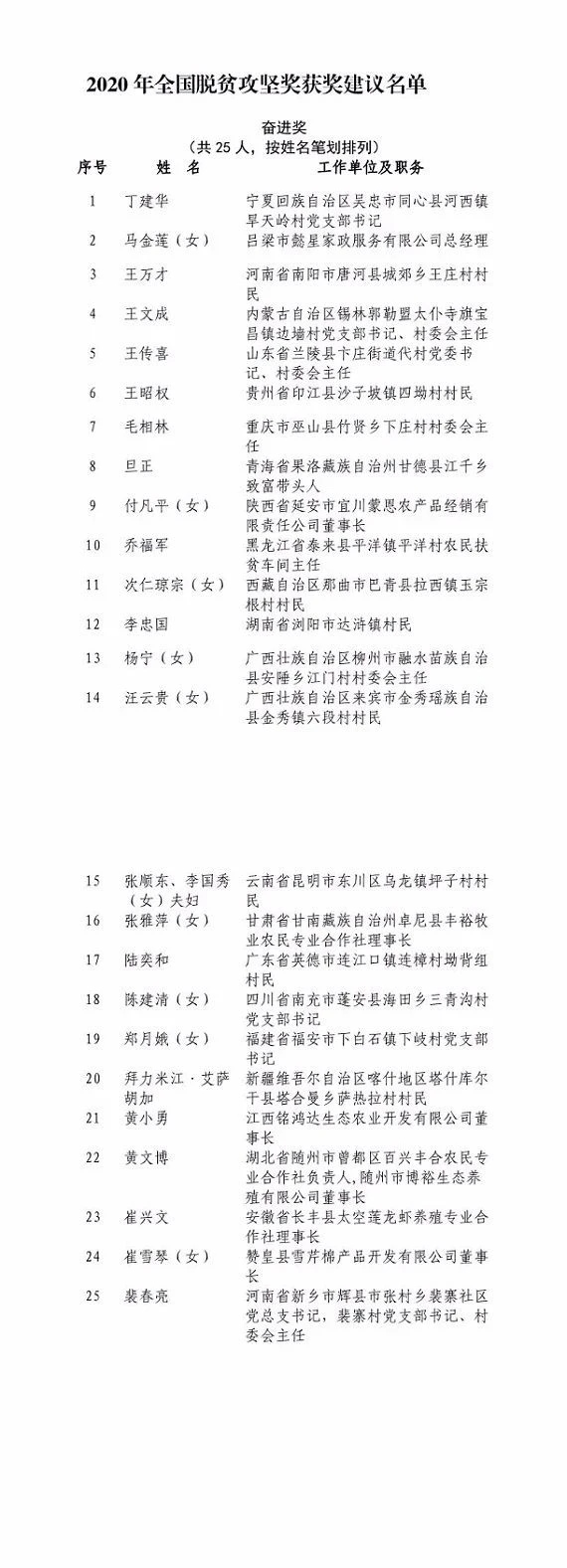 2020年全国脱贫攻坚奖获奖建议名单公示