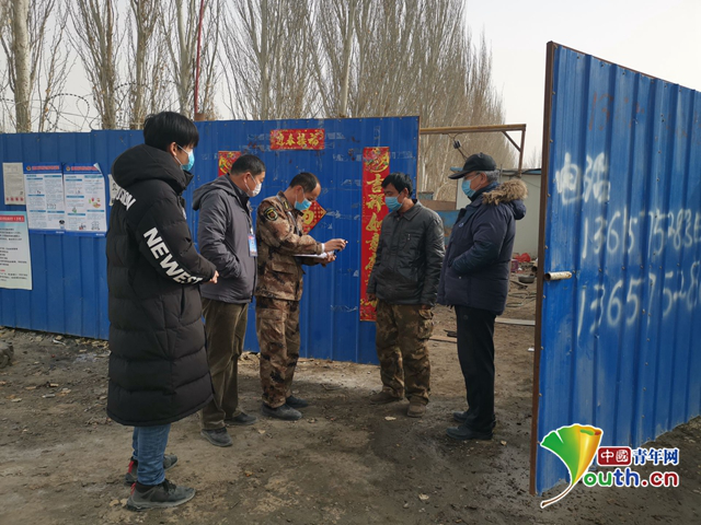 为断绝疫情传播途径,秦洪泽带领团队,在连队大门处设检查卡点,组织清运公共区域垃圾。同时,他还带人一起进行不间断地巡逻和开展宣传工作。“戴口罩,勤洗手,多通风,少出门,少聚集”,工作队通过大喇叭、宣传手册、快板、顺口溜等多种通俗易懂的方式,给职工群众宣传防控知识和有关政策措施。