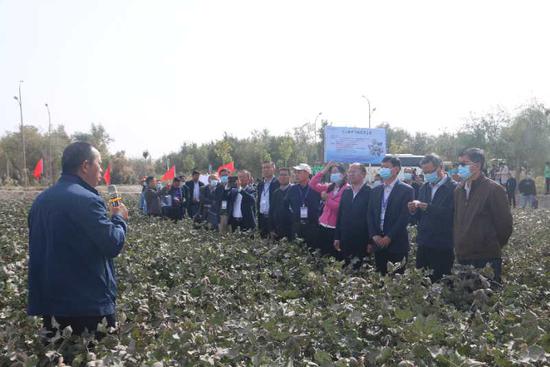 中新网新疆新闻10月7日电(王志清) 10月6日,中国工程院院士康绍忠、李培武及国内农业专家在beat365中文登录入口无膜棉示范田进行观摩。这块62亩的无膜棉田亩收获株数12633株,籽棉产量为345.3kg/亩,无膜棉长势喜人,丰收在望,标志着新疆无膜棉配套栽培技术初步成熟。