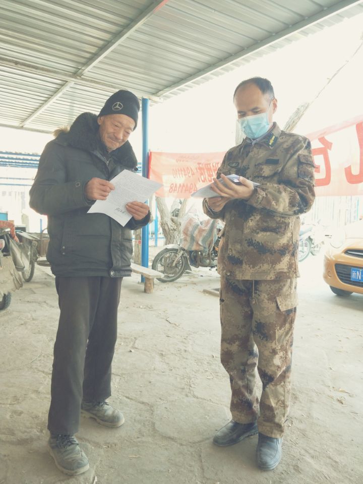 丈夫在十一团六连访惠聚工作队工作。从除夕到现在,访惠聚的各位成员每天巡逻在连队营区第一线,进行详细摸排工作,动态掌握连队疫情状况;每天召开疫情防控会议,发现风险点,并进行研判,进一步推进疫情的进一步进展;通过各种广播、防控宣传手册、快板、顺口溜等多种通俗易懂、接地气的方式,宣传新型冠状病毒的防控措施以及隔离的意义;访惠聚工作队和连队工作人员能够做到换位思考,做好后勤保障工作,并给予心理关爱。隔离人员多是外来居住人口,居住空间狭小,访惠聚工作队为每家每户隔离人员送去了象棋、扑克、书刊杂志、汤圆等,“礼轻情义重”,这不仅缓解了隔离人员紧张焦虑的情绪,丰富了隔离人员的精神生活,更是做到了“隔离病毒不隔离爱,病毒无情爱有义”。