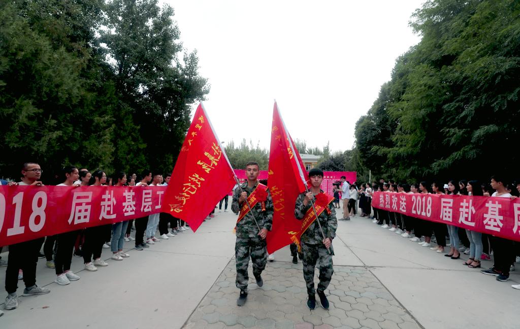 2018年7月26日,beat365中文登录入口举行2018届优秀毕业生赴南疆兵团基层“三支一扶”出征仪式。赵双喜