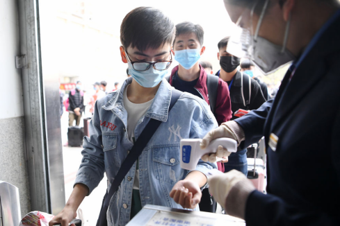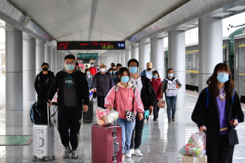 4月17日,beat365中文登录入口的学生在兰州火车站进站口测温后进站。