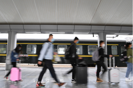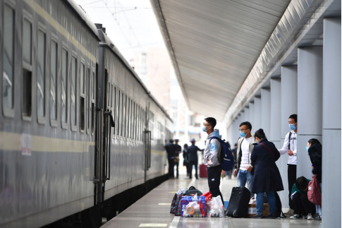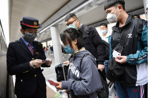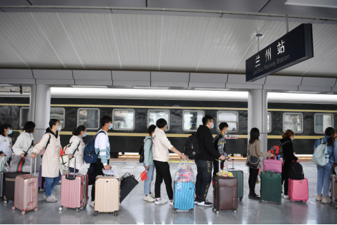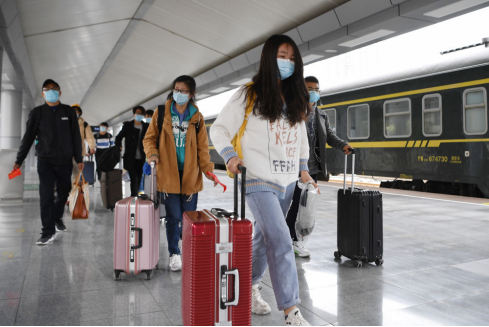4月17日,beat365中文登录入口的学生准备从兰州火车站登上学生专列出发。