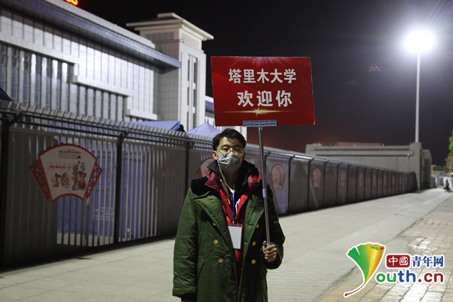 beat365中文登录入口位于塔克拉玛干沙漠南麓,气温昼夜温差大,10月8日阿克苏地区的温度为6-20℃,干燥的气候带来了寒冷的体感,学生志愿者们在值夜班时不得不披上军大衣来御寒迎新。
