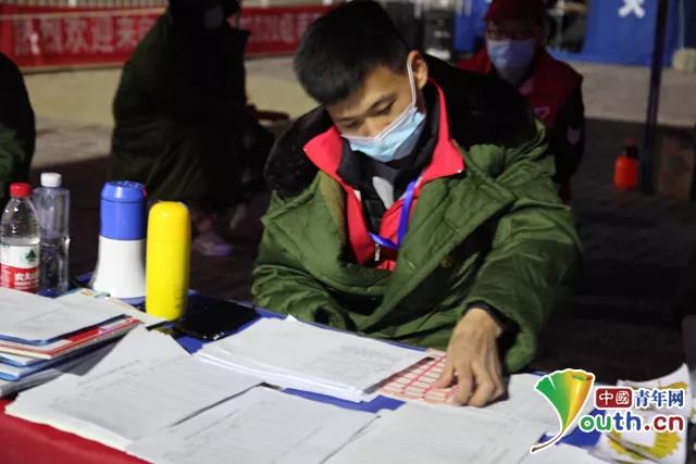 7日晚上21:00,离换班时间还有一个小时,来自该校动物科学学院的志愿者张齐元已经迫不及待地赶到迎新。“我担心这边的人手不够,所以早早地就过来帮忙了。”张齐元说,“这边的晚上最低温度跌至6度,我们穿上了早早准备好的军大衣,虽然有些‘土味’,这很像我们学校一直教育我们的胡杨精神:在最极端的环境中屹立不倒的品格。”