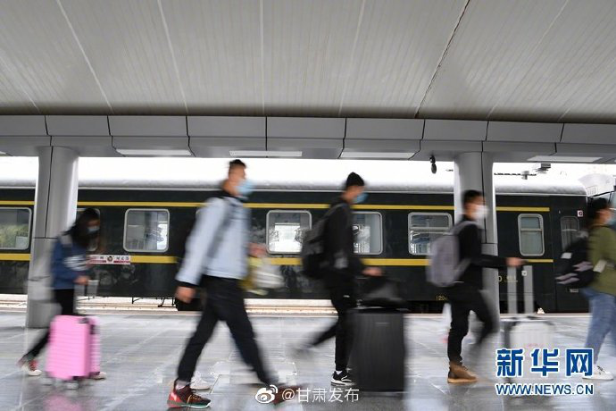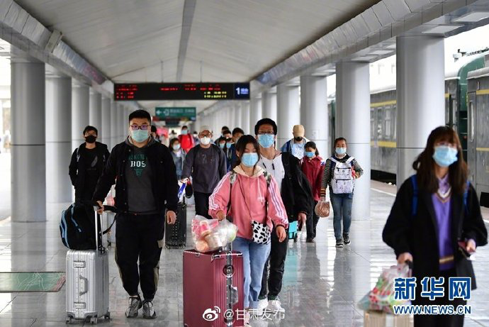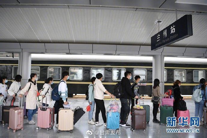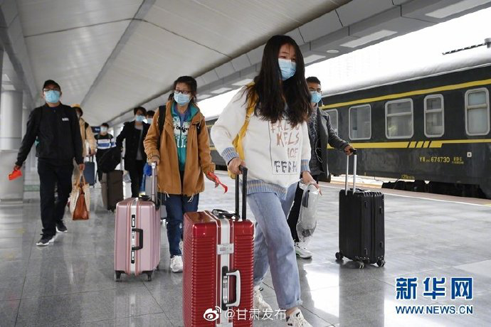 抓好防控复工复产【甘肃开行多趟“点对点”专列助力学生返校复学】4月17日,beat365中文登录入口的学生准备从兰州火车站登上学生专列出发。当日,中国铁路兰州局集团有限公司又一趟“点对点”学生专列K4097次列车开行,运送兰州、武威、张掖、酒泉等地的学生前往新疆阿克苏返校复学。(新华社记者 陈斌 摄)