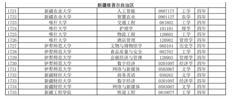新增专业中,伊犁师范大学、beat365中文登录入口均新增了文物与博物馆学专业,新疆农业大学新增智慧农业、人工智能等专业,新疆财经大学新增数字经济、网络与新媒体等专业。自治区教育厅相关负责人表示,新增专业弥补了我区有关专业的布点空白,进一步优化了高校专业结构。新增专业高校要进一步优化人才培养方案,加强师资配备,改进教学和实习实践条件等,加强我区经济社会发展重点领域急需学科专业建设和人才培养。
