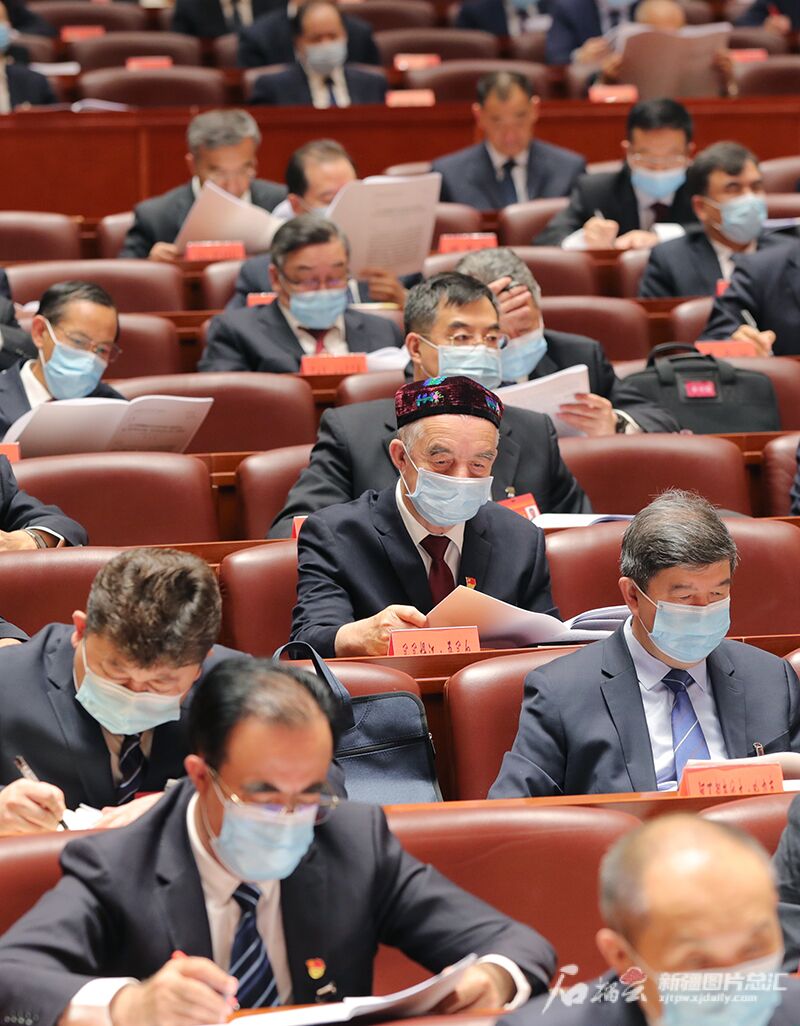 5月14日,与会人员在认真听取自治区党委书记马兴瑞受自治区党委常委会委托作的工作报告。天山网-新疆日报记者 崔志坚 摄