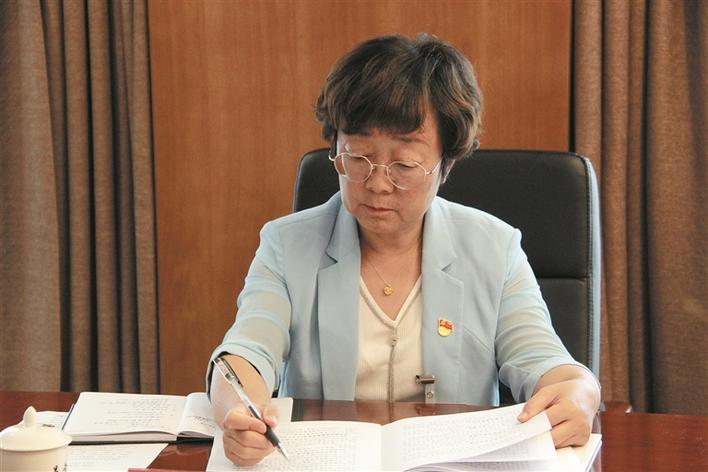 吴翠云代表参加分组讨论。 兵团日报全媒体记者 迪力娜·艾尔肯 摄