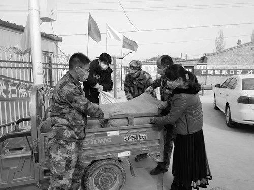 抗疫物资匮乏,秦泽洪带着工作队、连队干部和家人,一起往返上百公里,四处寻找抗疫支持,并亲自上门发放到连队职工群众手里。