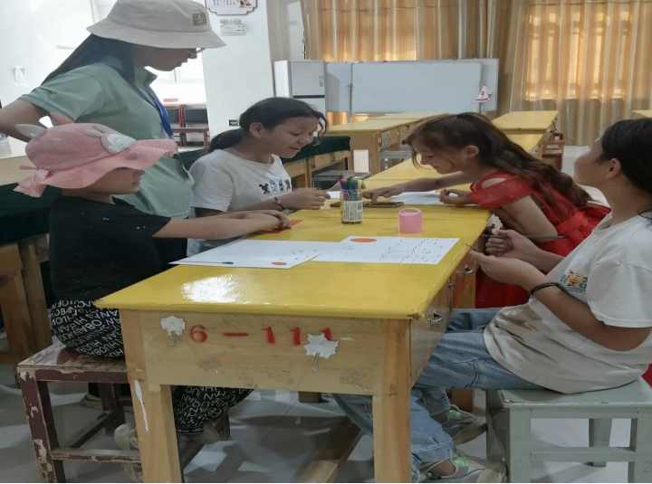 为团队成员与孩子们相互自我介绍活动开始,团队成员们一对一、多对一,面对面、手把手地悉心教学,尽己所能为孩子们答疑解惑,点亮理想的灯,照亮前行的路。