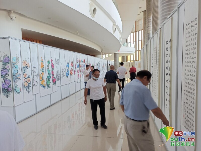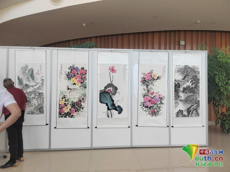 图为此次展览中展出的部分国画作品。中国青年网通讯员 郭乐乐 摄