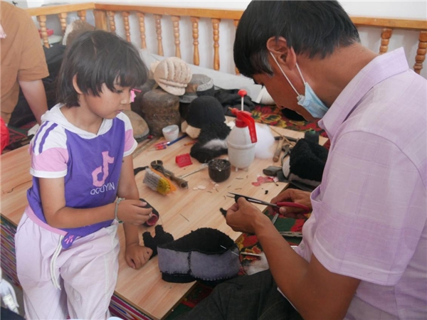 沙雅县的艾买尔·吐尼牙孜是目前年龄最小的获得家族真传,制作卡拉库尔胎羔皮帽的手工艺人,也是家族中的第四代传人。谈起自己学习制作羊皮帽的过程,最离不开的就是自己的父亲,家族的传承使他产生一种使命感。从小的耳濡目染让艾买尔·吐尼牙孜对羊胎羔帽的制作有一种深深的执着,这样的环境也影响了家庭里的其他成员。