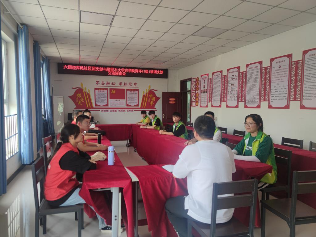 当天,实践团与六团团委办公室负责人朱耘庆和居委会负责人对接任务并合影留念。社区负责人对实践团的到来表示热烈的欢迎。
