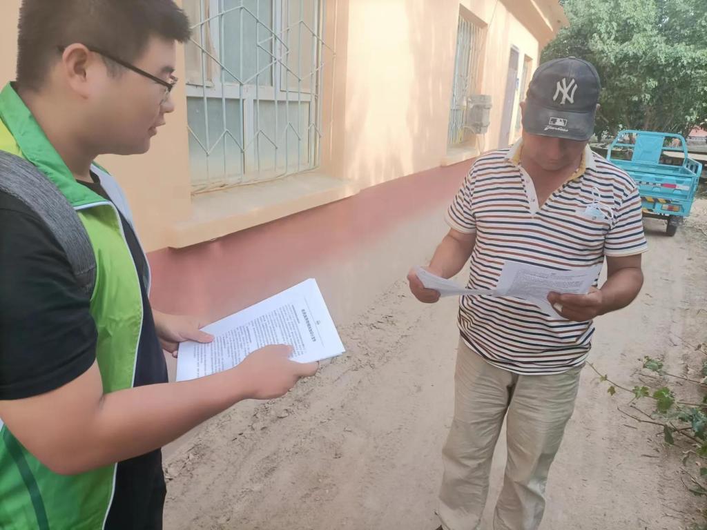 随后,小队成员开始给当地村民发放印有农药废弃物相关知识的宣传单,并为他们做了详细讲解,宣传单上有关回收处理农药废弃物的法律法规和实施方案提高了村民们回收废弃物的意识。