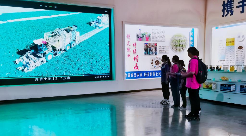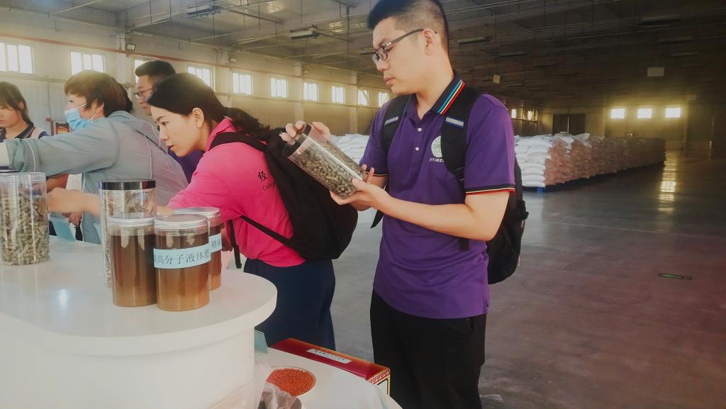 图为团队成员察看甜菜加工产品。通讯员 严平 供图