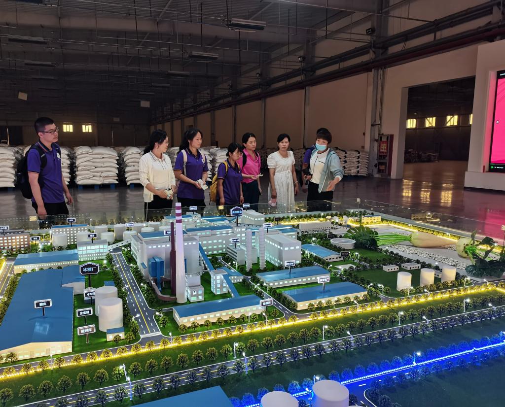 图为工厂负责人向团队介绍产业园布局以及未来规划。通讯员 严平 供图。