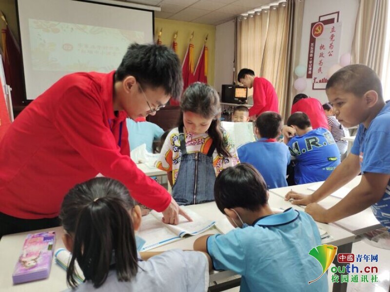 图为实践团给孩子们辅导作业知识。中国青年网通讯员 吴一平 供图