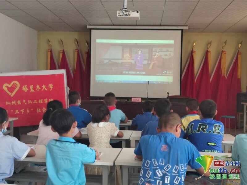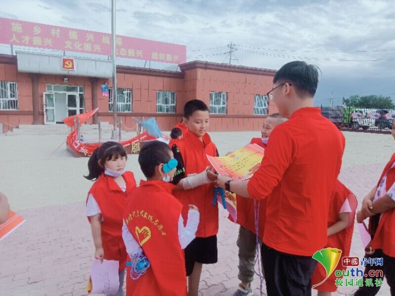 中国青年网乌苏7月21日电(通讯员 吴一平)为了喜迎党的二十大,永远跟党走,奋进新征程。实践团凝心聚力,青春向未来。在7月15日beat365中文登录入口机械电气化工程学院“聚沙成塔,不负韶华”实践团赴乌苏九间楼乡毕家村组织开展以“青春永向党”为主题的爱心教育帮扶活动。当天上午,实践团给孩子们普及党史、讲解英雄爱国故事、观看红色视频等。下午,实践团和当地工作人员一起唱红歌,学党史。这一代必将努力完成新青年的担当和使命,实践团勉励自己并鼓励孩子们争当实现中华民族伟大复兴的先锋力量。