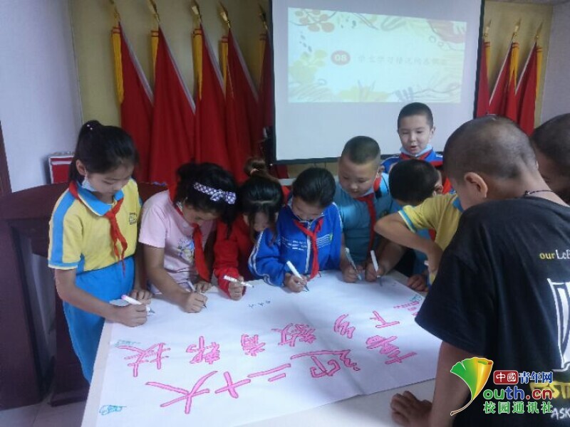 图为实践团鼓励孩子们担起中华民族伟大复兴责任。中国青年网通讯员 吴一平 供图