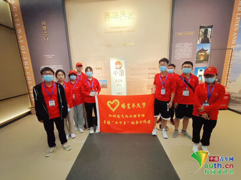 图为实践队员在国门界碑前合影。中国青年网通讯员 高继洋 摄