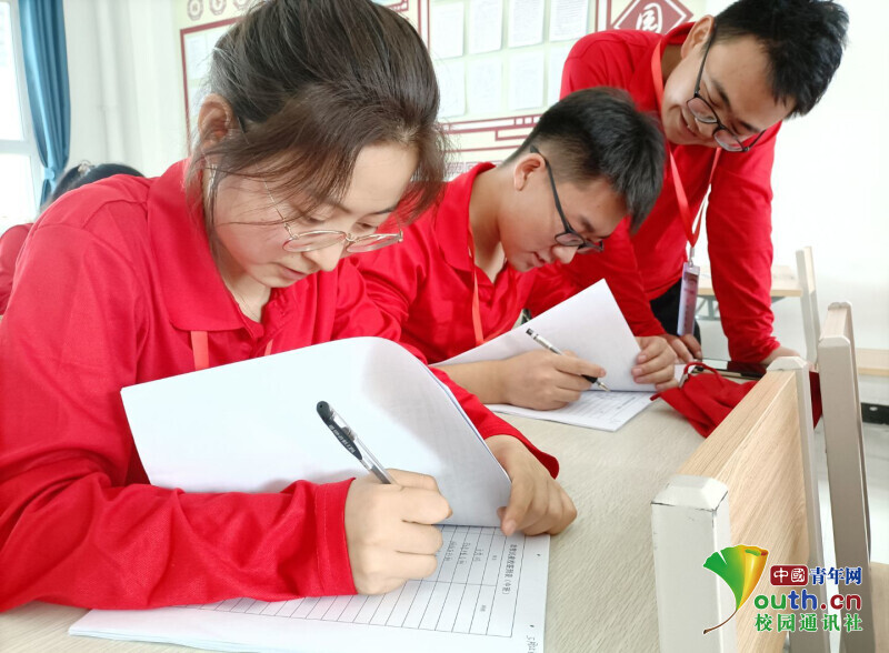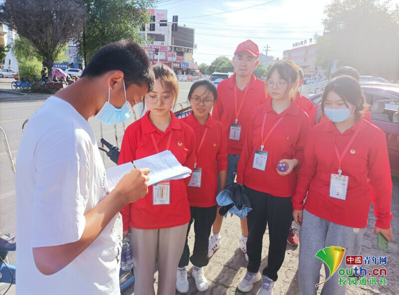 图为实践队员通过采访和调查问卷的形式对当地中学生进行丝路文化和红色历史的宣传。中国青年网通讯员 高继洋 摄