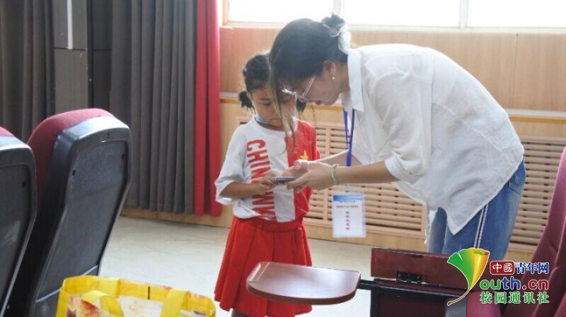 图为实践队员冯誉誉在为小朋友讲国语。中国青年网通讯员 周志强 供图
