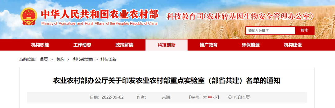 是为了进一步完善农业农村部重点实验室体系