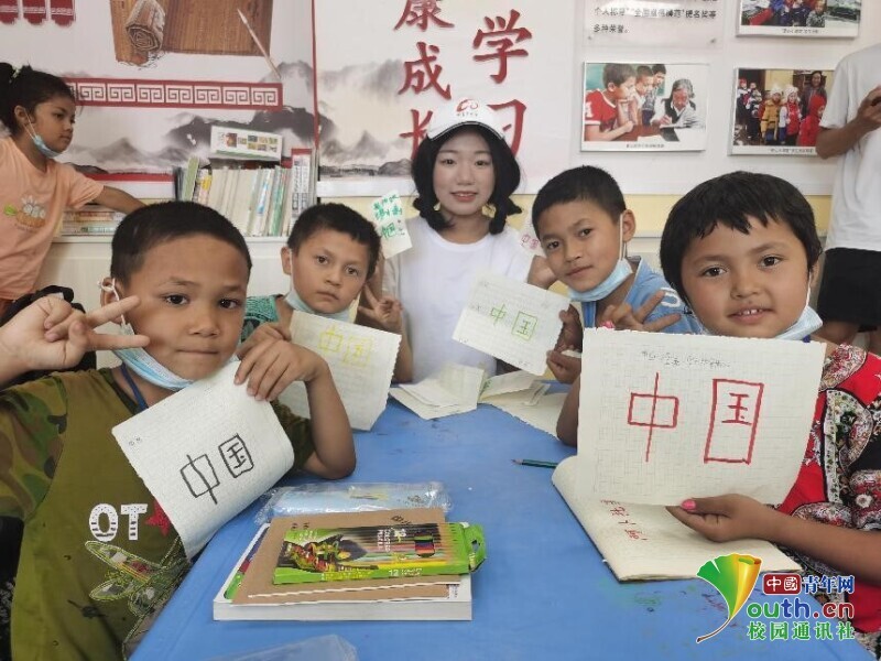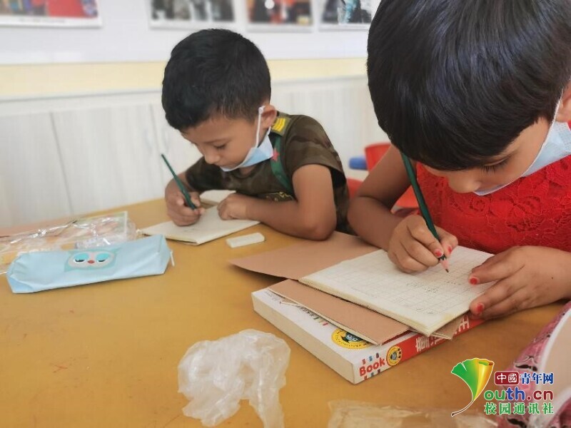 图为孩子们正在认真学习、练字。中国青年网通讯员 谭媛 摄