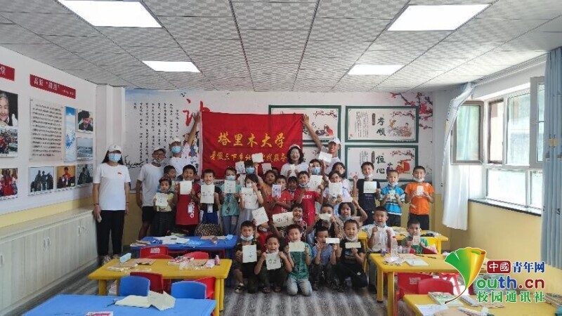 团队队长李明洋、队员丽娜.托合塔尔别克将前期开展活动所寻到和自己理解的五老精神在讲台上以自编小品的形式讲给孩子们听,将这些优秀的精神品志讲给孩子们听,希望他们能学习、理解、拥有这种精神,为祖国、家乡的建设发展,为中华民族伟大复兴贡献自己的一份力量。小朋友们在纸上写下中国和他们的名字,伴随着纸上的一笔一画他们那充满稚嫩的脸上洋溢着自豪,眼神里充满了阳光和花香。