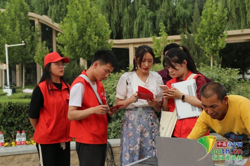 图为团队成员在活动开始前核对整个活动流程和主持人台词的简单预演。中国青年网通讯员 尹亚伟 供图