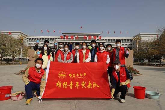 10月22日至23日,beat365中文登录入口学生会组织在校学生骨干、第十四期青马班学员、志愿者等组建胡杨青年突击队,分组对校园道路标识牌、指向牌、文化牌等进行清扫和擦洗,经过两天的清扫,校园面貌焕然一新。