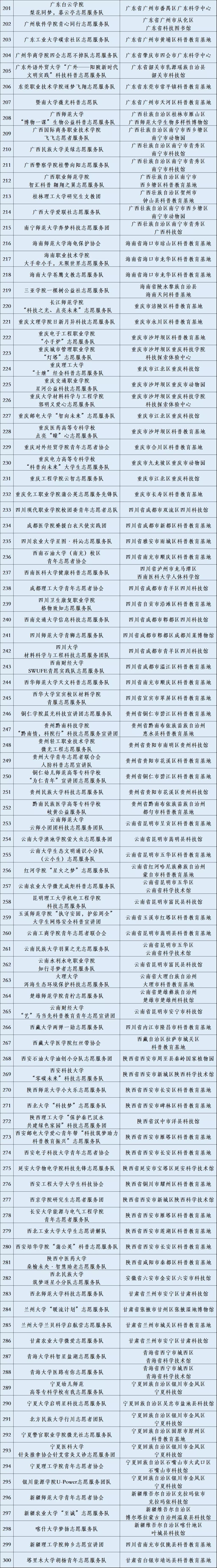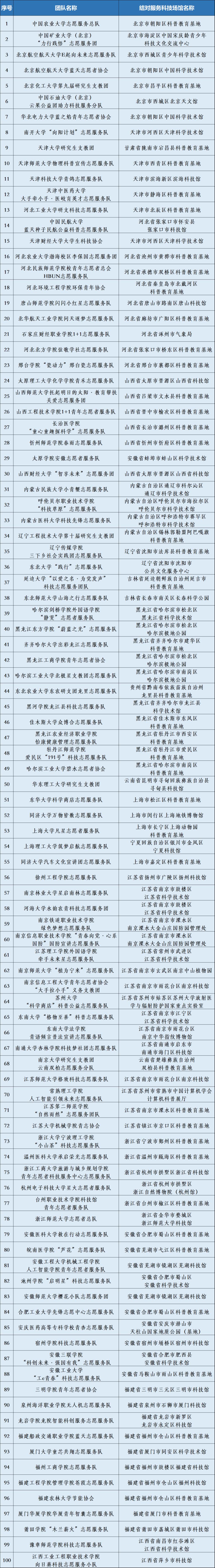 为推动高校大学生科技志愿服务专业化、规范化和常态化开展,团中央青年志愿者行动指导中心、中国青年志愿者协会秘书处联合中国科学技术协会宣传文化部面向全国征集遴选300支全国大学生科技志愿服务示范团队,现将名单公布如下。
