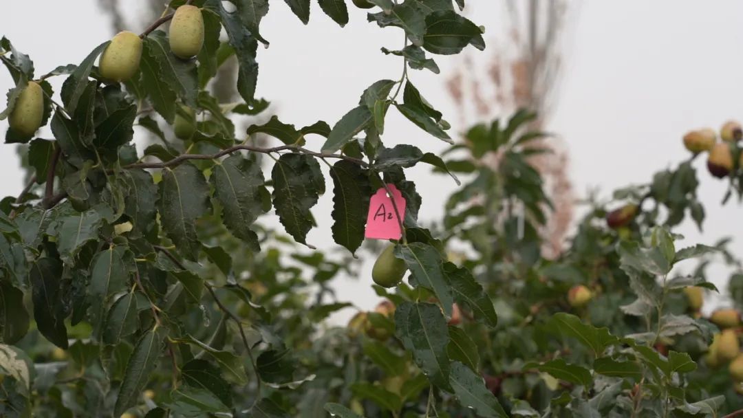 科技小院的研究生在红枣树上做的实验样本标记 记者杨智 摄