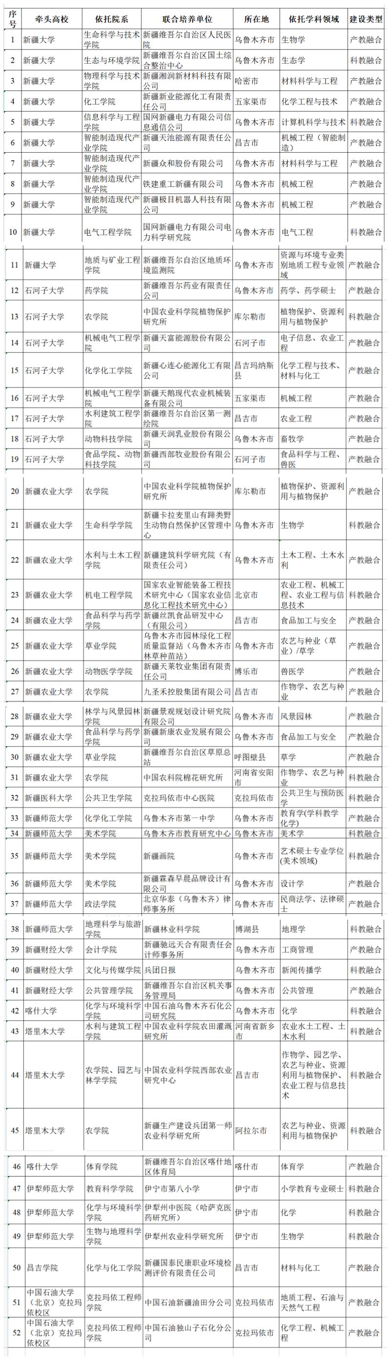 石榴云/新疆日报讯(记者 赵西娅报道)日前,自治区教育厅公布了2022年度52个立项的自治区产学研联合培养研究生示范基地,其中,“科教融合(汇)”型示范基地19个、“产教融合”型示范基地33个。