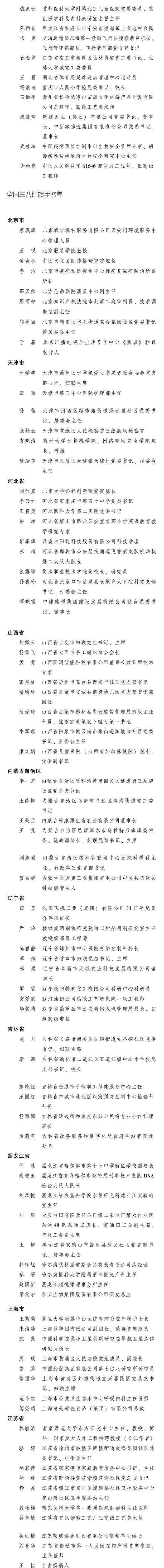 为表彰先进、树立榜样,进一步引领和激励广大妇女坚定不移听党话、跟党奋进新征程,豪情满怀、意气风发投入推进中国式现代化的伟大实践,日前,全国妇联决定,授予钱素云等10人全国三八红旗手标兵称号,授予蔡凤辉等298人全国三八红旗手称号,授予北京高校思想政治理论课高精尖创新中心等199个单位全国三八红旗集体称号。