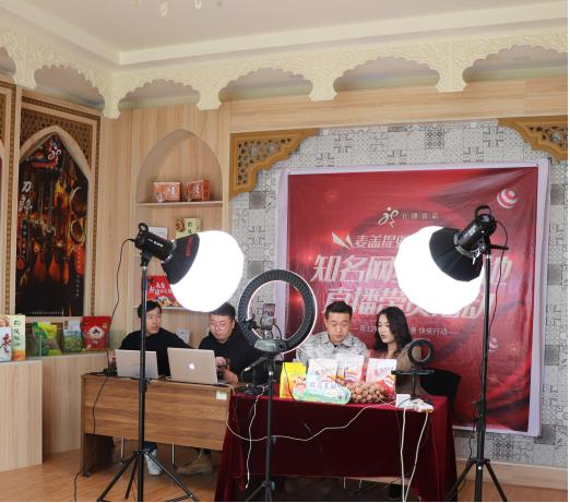 在麦盖提县电子商务公共服务中心,专业团队在直播带货。 麦盖提县政府供图