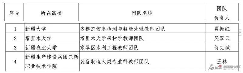 近日经教育部评审公示拟确定第三批“全国高校黄大年式教师团队”共199个其中新疆(含兵团)有4个团队入选