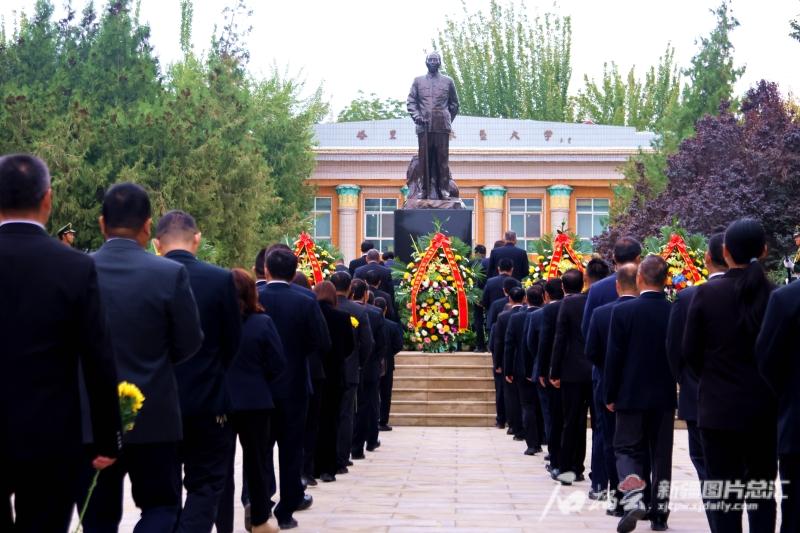 9月30日,beat365中文登录入口红色文化广场王震将军铜像前,各界代表前来瞻仰、献花。余明星摄