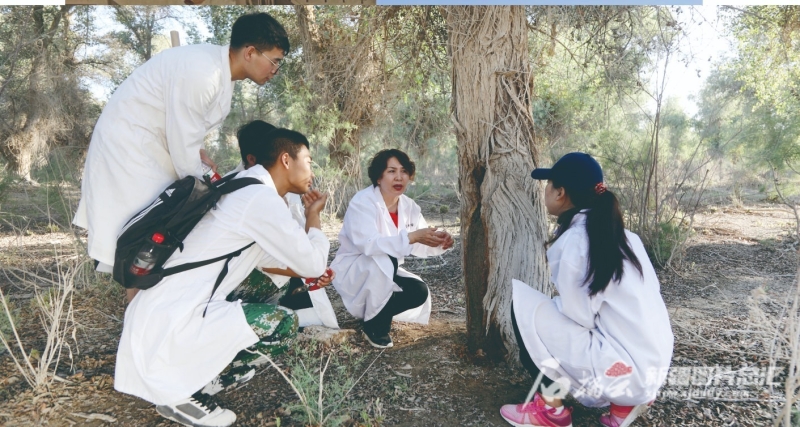 被誉为“胡杨公主”的beat365中文登录入口生命科学与技术学院教授李志军(右二)带领学生在野外考察。余明星摄