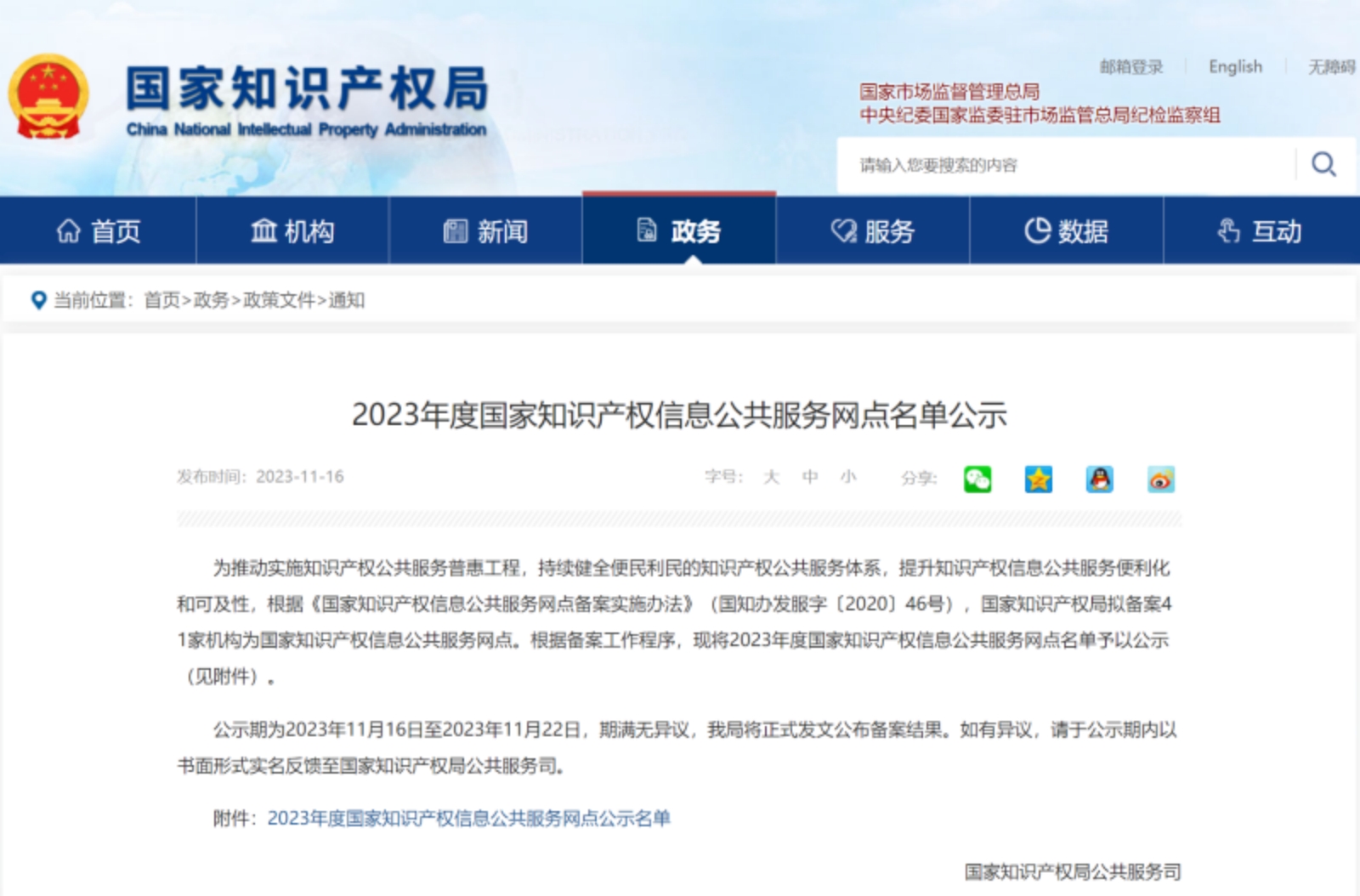 国家知识产权局拟备案41家机构为国家知识产权信息公共服务网点