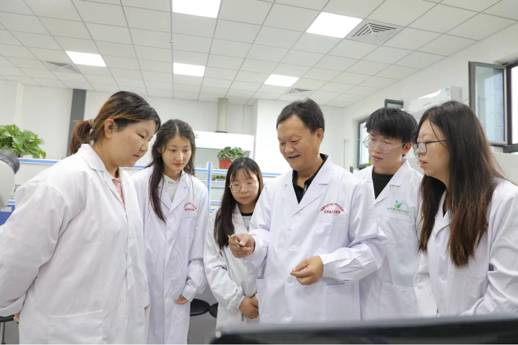王兰带领学生在实验室里做实验。阿迪力·艾尼 摄