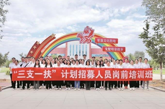 高校毕业生参加七师胡杨河市举办的“三支一扶”计划招募人员岗前培训班(摄于8月12日)。 兵团日报常驻记者 张西安 通讯员 孟安宁 摄影报道
