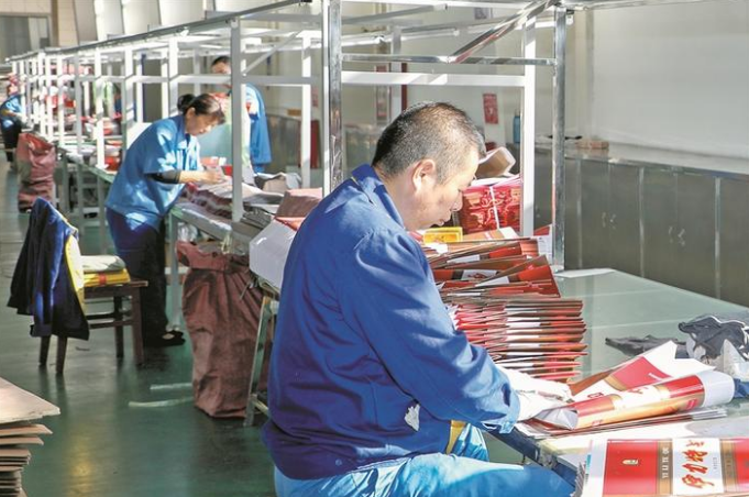 12月20日,在新疆伊力特印务有限责任公司生产车间内,员工正在制作酒盒。近年来,该公司积极履行社会责任,大批招用残疾员工。截至目前,该公司共雇用残疾员工67人,占员工总数的69%。 兵团日报常驻记者 杨俊钦 摄
