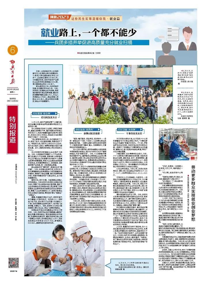 2023年,兵团深入实施就业优先战略,积极落实稳岗扩就业政策举措,在政策落实、就业服务、创业扶持上给予极大支持,保障职工群众“安其职、乐其业、劳有得”,为满足职工群众对美好生活的向往、推动兵团经济社会高质量发展提供了有力保障。