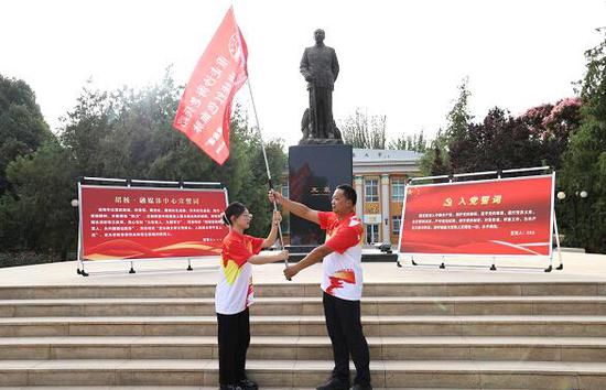 “重走沙海老兵路,赓续红色血脉”“挖掘胡杨人物,阐释胡杨精神”“胡杨情,西部行”“厚植爱农情怀,练就兴农本领”,4支校级“三下乡”专项团队负责学生,分别从指导老师手中接过队旗。
