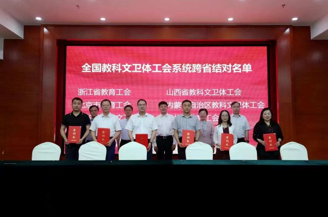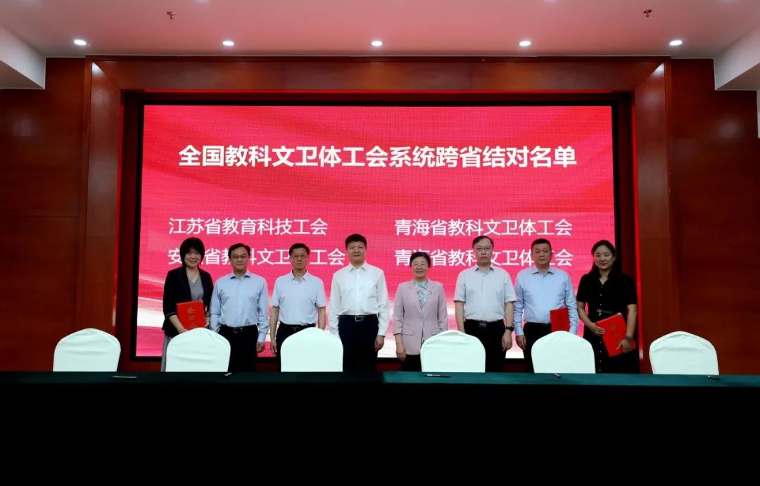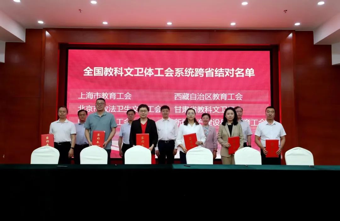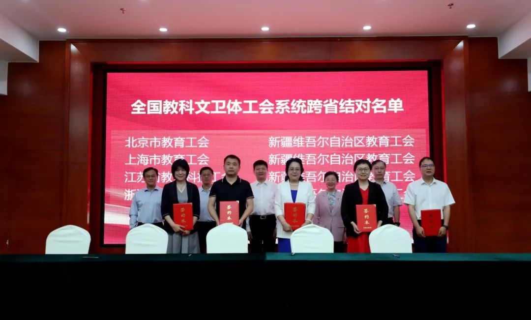 12个东部省级产业工会与西部10个结对帮扶省市教科文卫体工会,以签约为契机,巩固兄弟情谊,助力未来帮扶行动行稳致远,共筑美好未来。